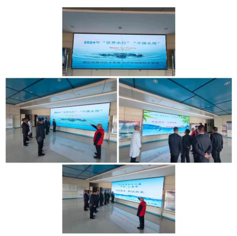 機(jī)關(guān)黨支部黨員志愿者帶領(lǐng)下,與會(huì)代表在忻州市節(jié)水教育基地展板前認(rèn)真學(xué)習(xí)了習(xí)近平總書(shū)記關(guān)于保護(hù)水資源的系列講話精神。在忻州市節(jié)水教育基地忻州市水資源電子沙盤(pán)前了解忻州市水資源現(xiàn)狀,聽(tīng)取了志愿者講解“節(jié)水優(yōu)先、空間均衡、系統(tǒng)治理、兩手發(fā)力”的治水思路和全省“三縱九橫、八河連通”水網(wǎng)體系建設(shè)成果。在水質(zhì)檢測(cè)大樓門(mén)廳大顯示屏前聽(tīng)取了志愿者講解2024年“世界水日?中國(guó)水周”宣傳標(biāo)語(yǔ)深刻內(nèi)涵和節(jié)水常識(shí)。